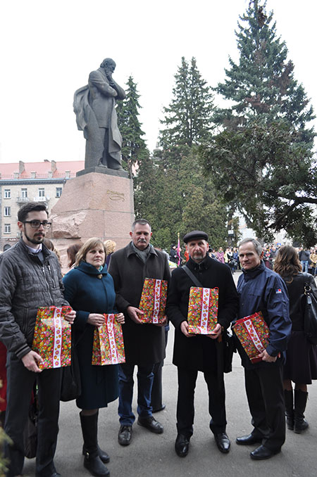 Ми з радістю відгукнулися на прохання, узявши участь в цих святкових дійствах. Тож Юрій Вавринюк, Віктор Гребенюк, Дмитро Довбуш, Ольга Міцевська й Володимир Сад виконали цю приємну місію: подарували свої книги й колективні видання осередку кращим шевченколюбам.